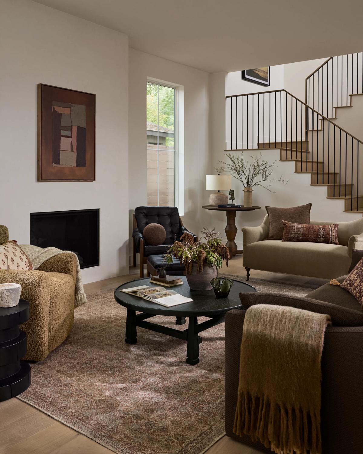 Defined by minimal—yet distinctive—forms and clean lines, modern design is beloved for good reason. In creating this space, we favored these iconic silhouettes and rendered them in rich, earthy colors. Light and dark contrasts rule every room, punctuated by natural textures and bold accents: The result is a deeply warm and welcoming space you won’t soon want to leave.