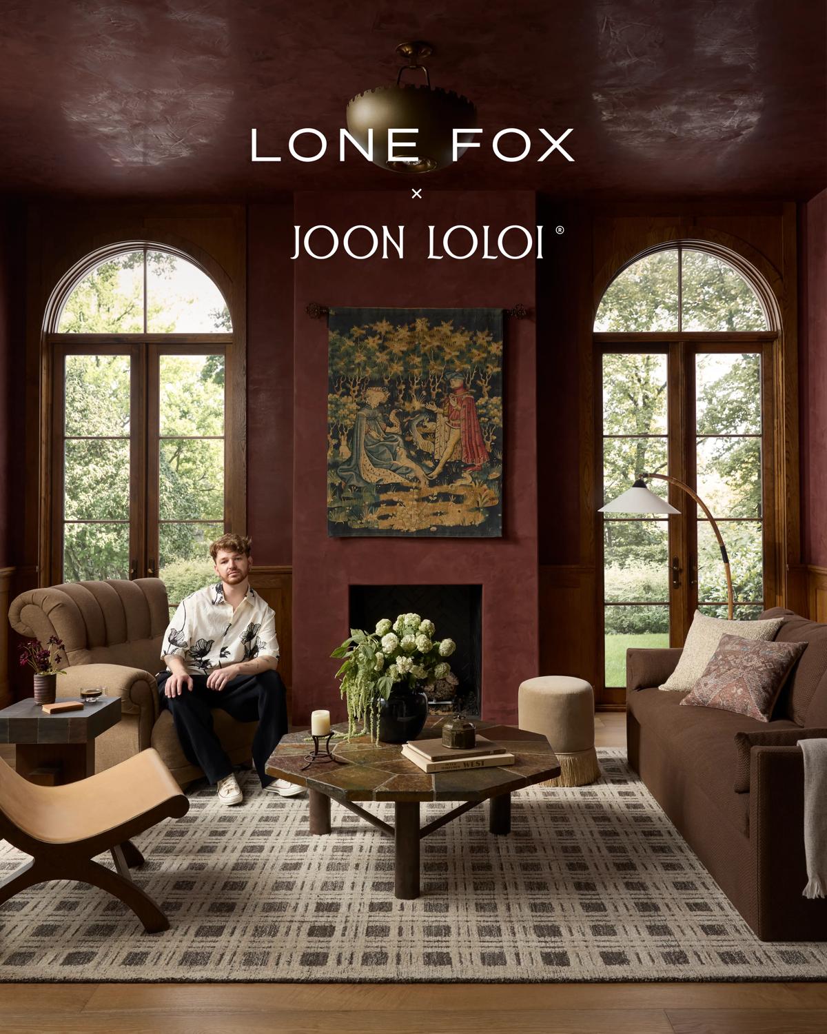 Since the launch of Lone Fox, Drew Michael Scott has dazzled his audience with inspired DIYs and large-scale design projects. His personal style has flourished alongside, embodying a love of antique finds, midcentury-modern and brutalist sensibilities, and romantic flourishes. Lone Fox x Joon Loloi is an expression of Drew’s style: a collection of rugs and pillows that capture his favorite influences—and bring them home to you.