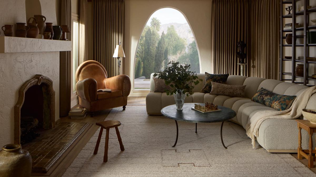 Here, earth tones, natural textures, and organic elements rule, creating a warm, serene feel—the definition of storied. The Holmby Rug ties the room together, while the Benedict, Laughlin, and Hepburn Pillows add a dash of old-Hollywood charm.