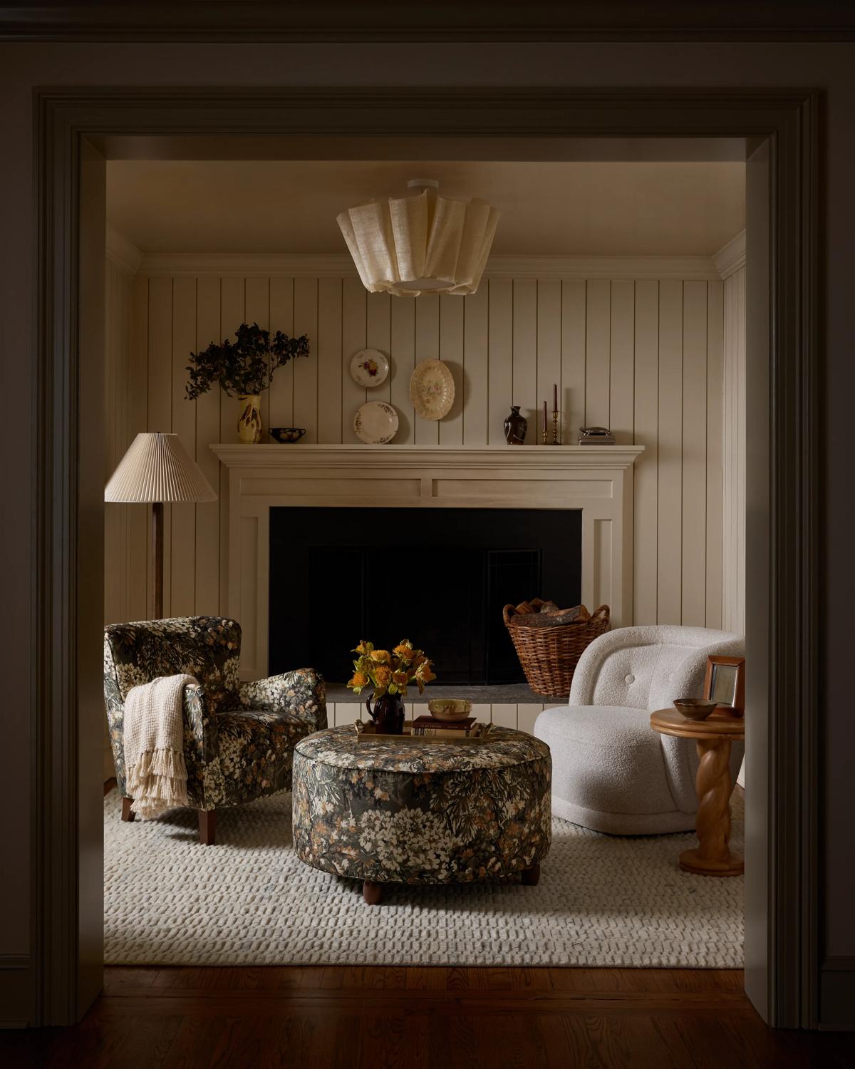 Inspired by British country homes and clean-lined Georgian Revival architecture, we curated these rooms to embody a traditional feel, with an eclectic edge. When it comes to furniture, you’ll find romantic curves and bold lines paired with fabrics that feature stripes, grids, and organic influences. You’ll also find mixed materials in unexpected places (like a wood-and-travertine mirror and leather-trimmed lamp). A true meeting of timeless and contemporary: warm, inviting, and design-forward.