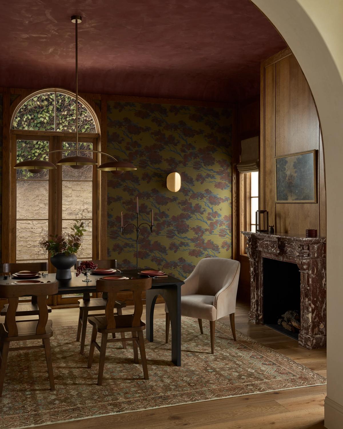 The bigger the dining table, the bigger the rug. Width is crucial to support all of your seating, but don’t forget you’ll need extra length if you want to seat people at the heads of the table, too.