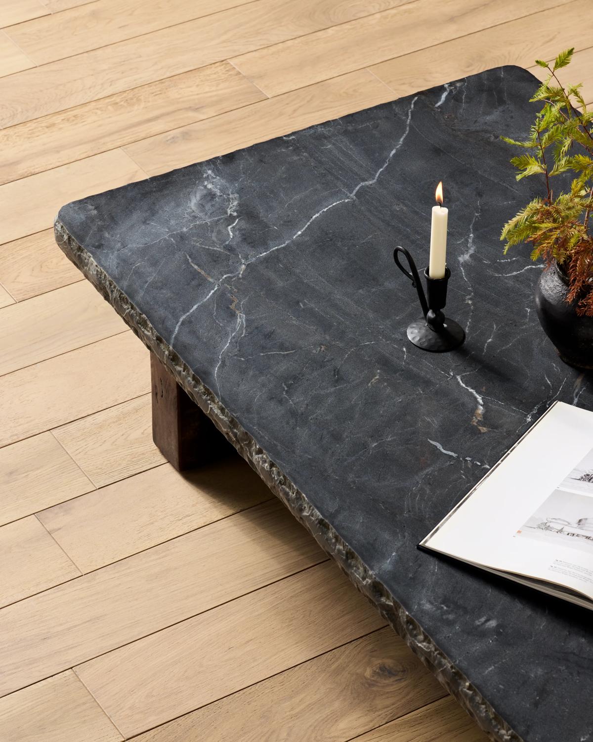 This collection is crafted of your choice of light or dark marble and a pine base, featuring natural variations that bring a distinctive feel home. Each marble slab is different from the next, featuring varying coloring and striations—which means that no two are alike: a work of artisan craft that’s unique to your space.