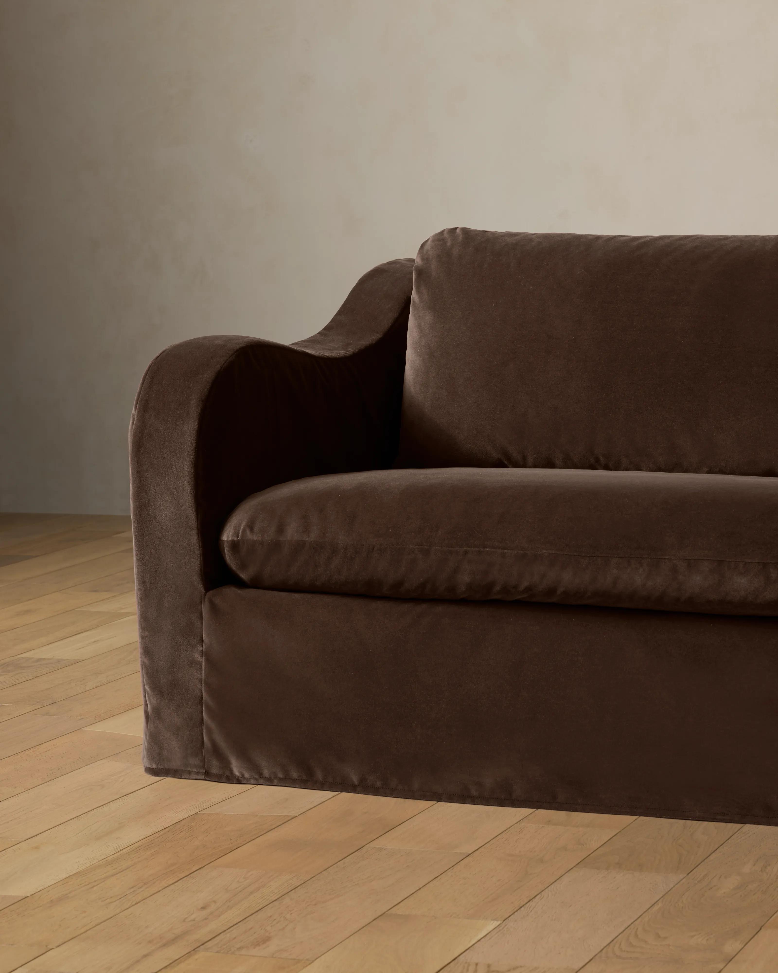 Rosamund’s sloping curves define its silhouette, creating a warm and inviting feel in your space. And with over 20 fabric options available—from lush velvets to bouclé and linen blends—there’s something to suit every style.