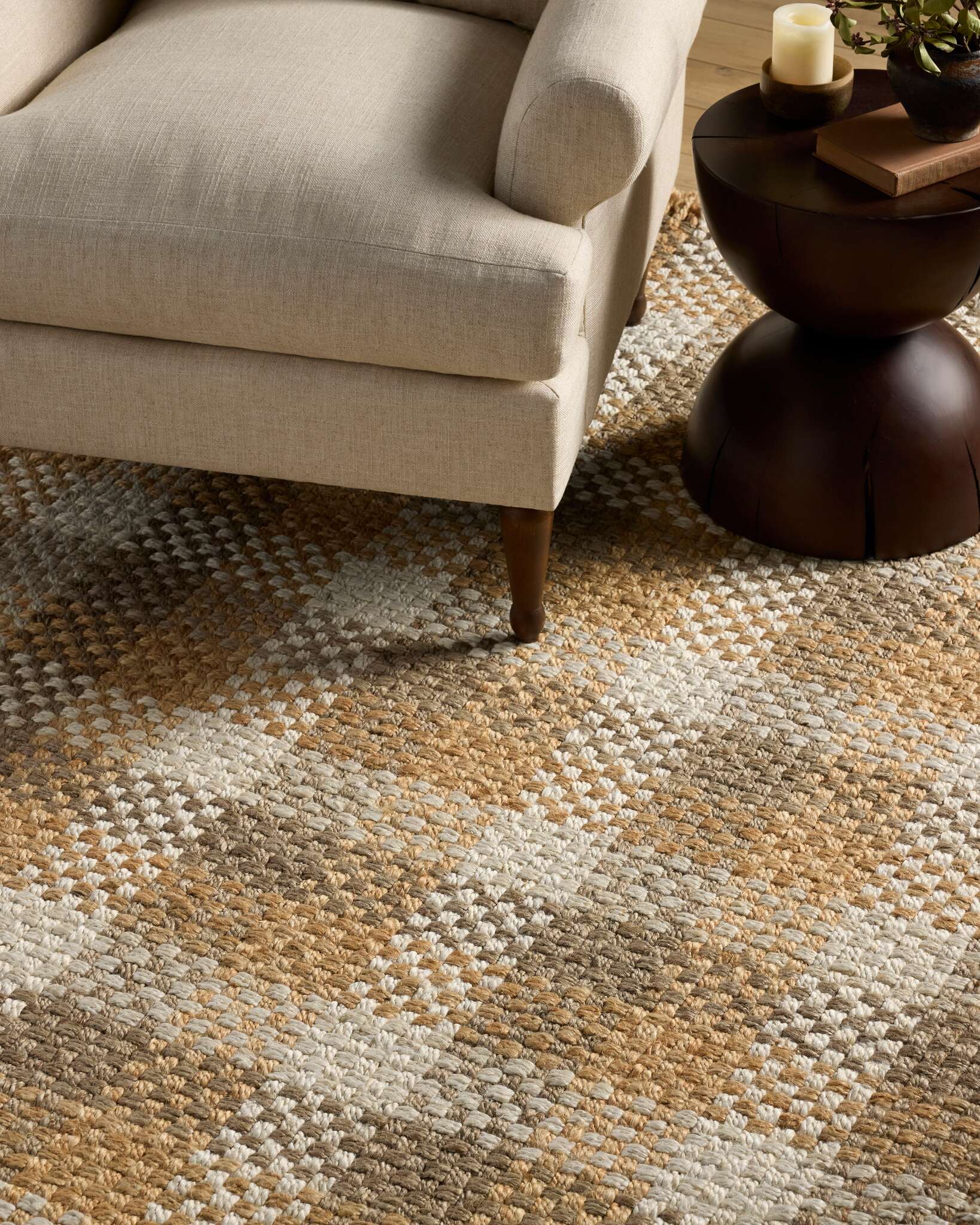 A rug's environment and lighting have a significant impact on how it looks in your space. Click on each lighting option to see how Latika Handwoven Jute Rug's colors will come through in different environments.