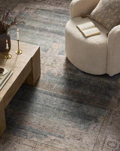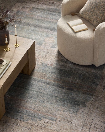 Moody blues and earth tones—Matisa is a grounding force in your space, with textural interest that comes through in its jute-blend construction.