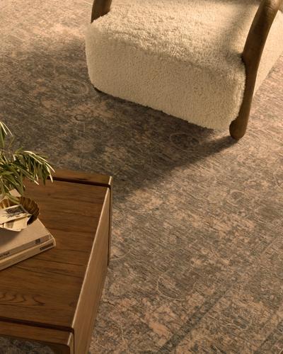 Soft romance is the name of the game with Misha—from its swirling florals to its soothing color palette and textured pile.