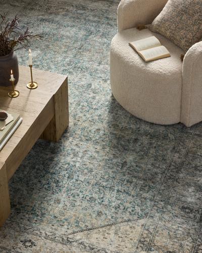 Relish every detail—Narina spares none. Aquamarine hues, with fading in all of the right places, Narina is a vibrant visual anchor for the spaces you love.