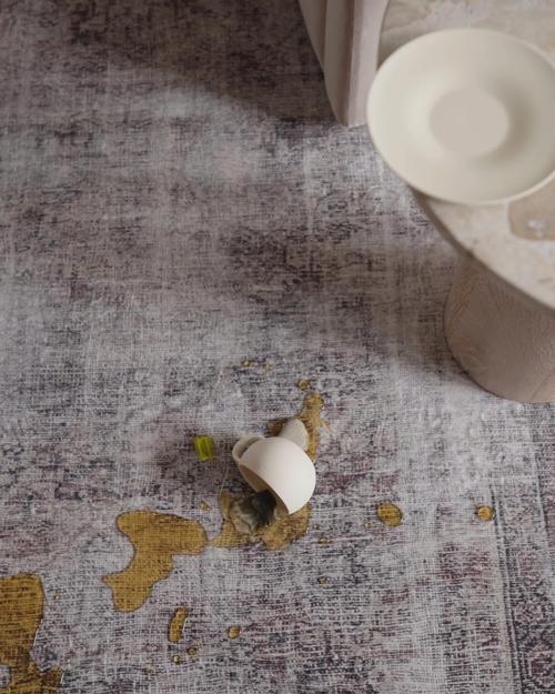 When spills happen, first blot your rug with a clean, dry sponge or cloth.