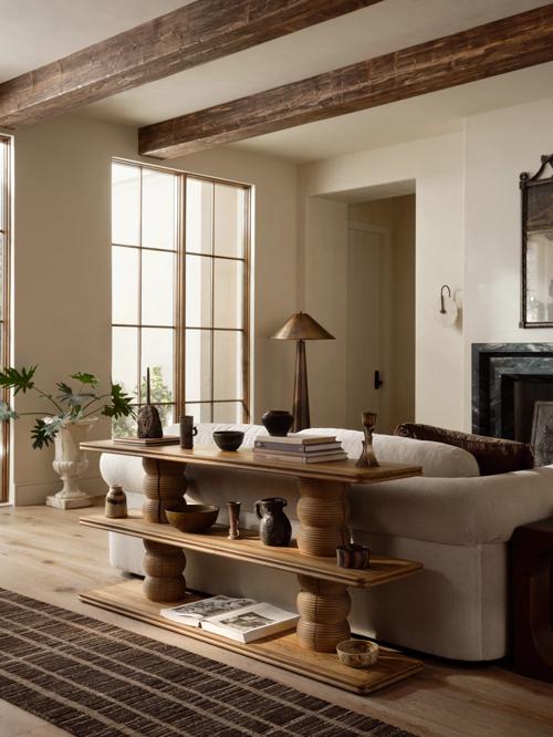 Part console table, part art piece: Toshiro complements your décor, photos, and book collection with striking sculptural details. It’s artisan made of oak and alder, featuring rustic-wood details—including cracks along the pillars—so no two are alike in their natural variances.